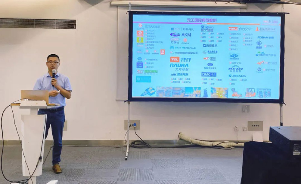 北京元工国际科技股份有限公司总裁助理丁鹏飞先生受邀演讲 《MES系统助力电子行业企业智能制造跨上新台阶》,与现场嘉宾分享了电子行业企业管理对工厂管理的痛点、MES如何能解决管理者的这些痛点、电子工厂实施案例及实施MES后的经济效果展示。