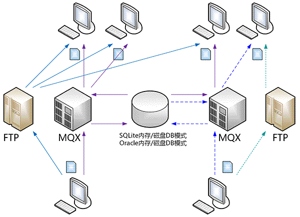 - 对于大规模应用,支持多台MQX服务器和FTP服务器并发。